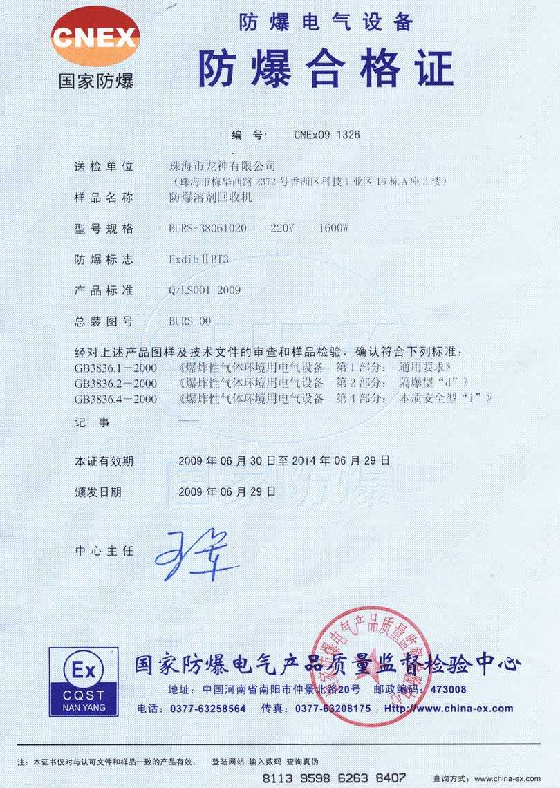 防爆認(rèn)證 防爆溶劑回收機(jī)防爆合格證 BURS系列防爆溶劑回收機(jī)技術(shù)條件 BURS-38061020型防爆溶劑回收機(jī) 使用說(shuō)明書(shū) BURS-38061020型防爆溶劑回收機(jī) 圖紙資料 (以上圖片均可點(diǎn)擊放大) 2012-11-27 34921