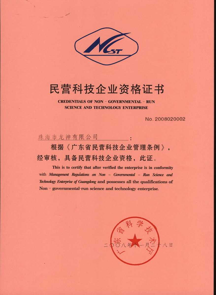 資格證書 一、ISO9001:2008質(zhì)量管理體系認(rèn)證ISO9001:2008質(zhì)量管理體系認(rèn)證證書 二、廣東省民營科技企業(yè)資格證書民營科技企業(yè)資格證書 廣東省民營科技企業(yè) 三、珠海市生產(chǎn)科技企業(yè)證書生產(chǎn)科技型企業(yè) 珠海市生產(chǎn)科技型企業(yè) 認(rèn)定證書 生產(chǎn)科技型企業(yè)資格證書(以上圖片均可點擊放大) 2012-11-27 37337